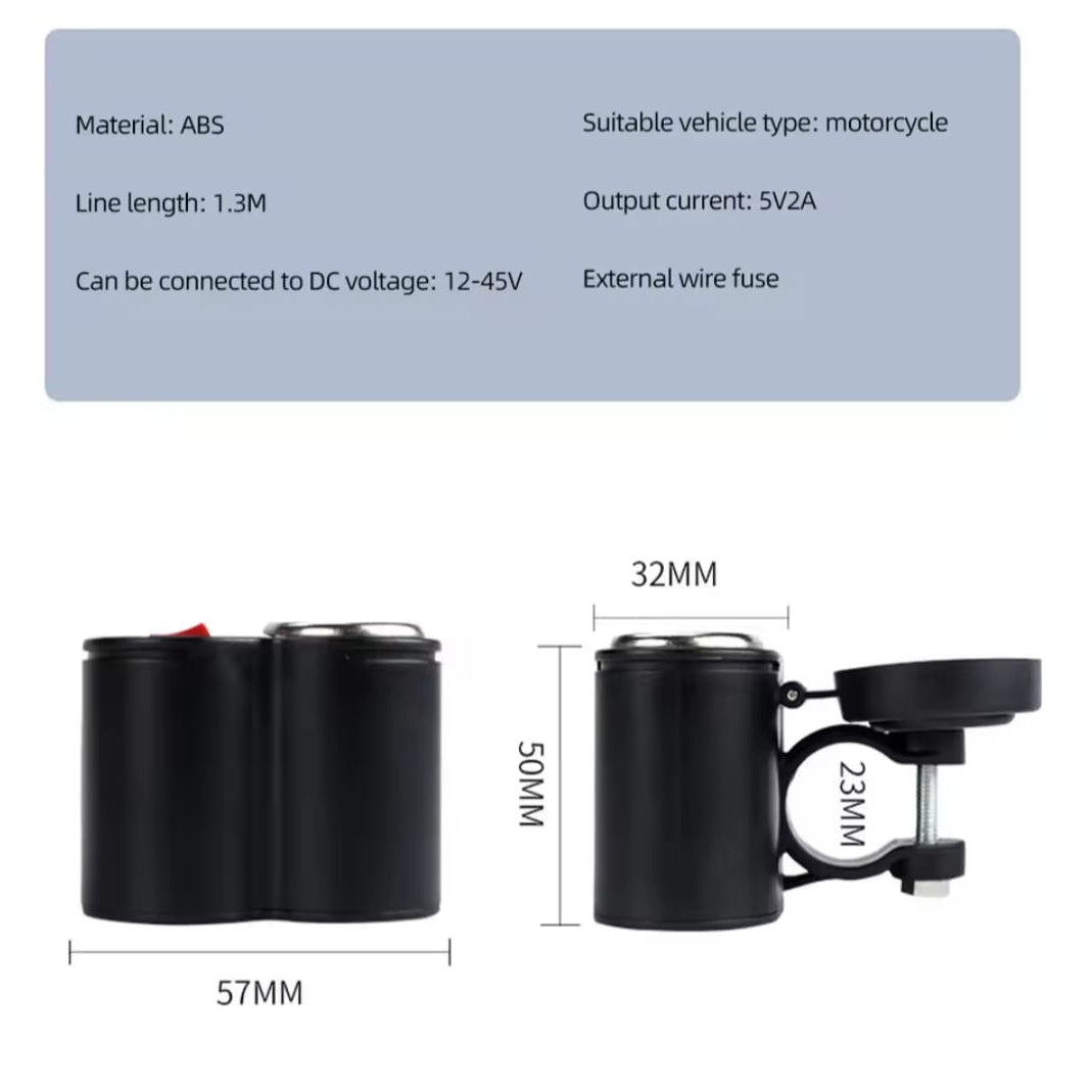Motorcycle Handlebar Phone Charger Waterproof USB Power Adapter Designed For 12V Power Supply With 2.0A...